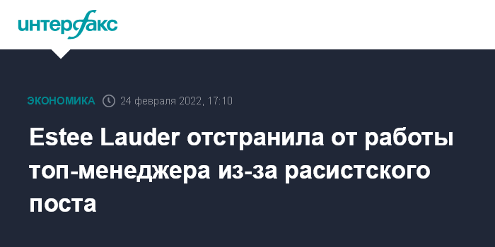 Москва. 24 февраля. INTERFAX.RU - Американский производитель косметики Estee Lauder Cos. Inc. временно отстранил от должности Джона Демзи, одного из президентов компании, из-за публикации в инстаграме, пишет Wall Street Journal.
