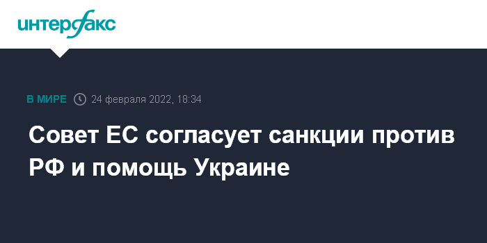 "Совет ЕС соберется на встречу сегодня. Мы согласуем по существу пакет целенаправленных санкций. Мы также примем решения в отношении политической, финансовой и гуманитарной помощи Украине и ее народу", - заявил он в штаб-квартире НАТО, где прошла встреча с генсеком альянса Йенсом Столтенбергом и главой ЕК Урсулой фон дер Ляйен.