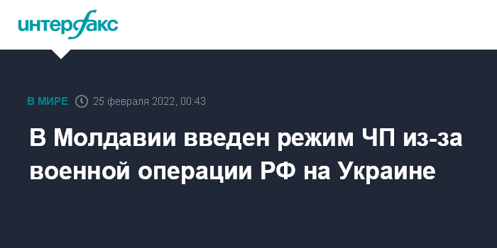 В Молдавии введен режим ЧП из-за военной операции РФ на Украине