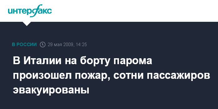 Москва. 29 мая. INTERFAX.RU - Сильный пожар произошел в пятницу на борту парома "Винченцо Флорио", следовавшего из Неаполя в Палермо. Огонь разгорелся утром, когда судно находилось недалеко от Палермо. Команде пришлось посадить всех 526 пассажиров в спасательные шлюпки. Многие моряки остались на борту, чтобы вместе с пожарными попытаться потушить пламя.