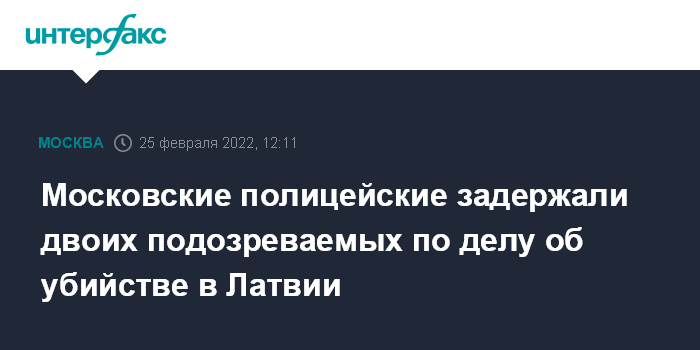 Москва. 25 февраля. INTERFAX.RU - Сотрудники полиции задержали в Москве находившихся в международном розыске подозреваемых в убийстве футбольного агента в Латвии, сообщила официальный представитель МВД России Ирина Волк.