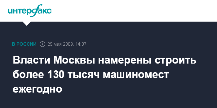 Власти Москвы намерены строить более 130 тысяч машиномест ежегодно