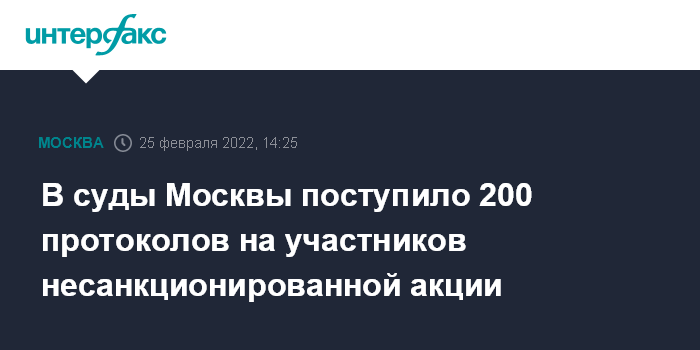 Москва. 25 февраля. INTERFAX.RU - Столичные суды зарегистрировали около 200 административных материалов в отношении участников прошедшей накануне несогласованной акции в центре Москвы, сообщили "Интерфаксу" в пресс-службе Мосгорсуда.