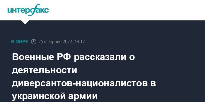 Москва. 25 февраля. INTERFAX.RU - Минобороны РФ заявило, что подготовленные Службой безопасности Украины группы националистов занимаются подрывом мостов, чтобы помешать отступлению частей украинской армии.