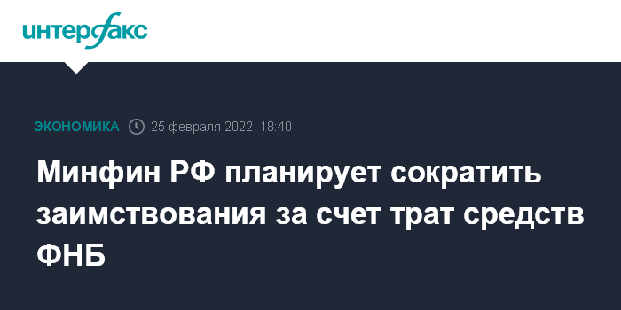 Москва. 25 февраля. INTERFAX.RU - Минфин РФ планирует сократить объем заимствований в 2022 году, заместив их использованием средств Фонда национального благосостояния (ФНБ), сообщил министр финансов РФ Антон Силуанов на совещании у премьер-министра по преодолению санкций.
