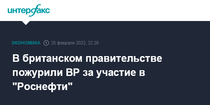 Москва. 25 февраля. INTERFAX.RU - Нефтяная компания на фоне начала военной операции на Украине оказалась под огнем критики: отдельные британские политики требуют от компании разорвать связи с "Роснефтью", пишет Financial Times.