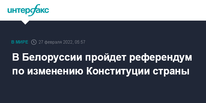 Москва. 27 февраля. INTERFAX.RU - В Белоруссии в воскресенье состоится референдум по внесению изменений и дополнений в Конституцию страны.