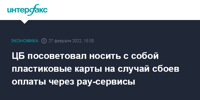 ЦБ рекомендует носить с собой пластиковую карту, чтобы иметь возможность расплатиться без использования pay-сервисов.
