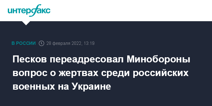 "Что касается возможных жертв - это вопрос в министерство обороны, и министерство обороны этим занимается", - продолжил Песков.