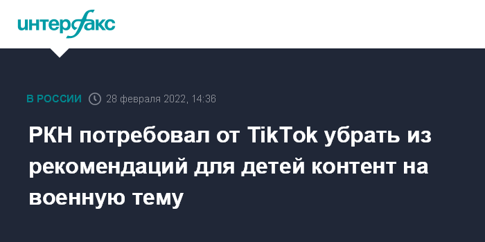 В связи с этим РКН потребовал от администрации TikTok Pte. Ltd. "исключить из рекомендаций для несовершеннолетних любой контент военной или политической направленности".