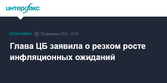 Глава ЦБ заявила о резком росте инфляционных ожиданий