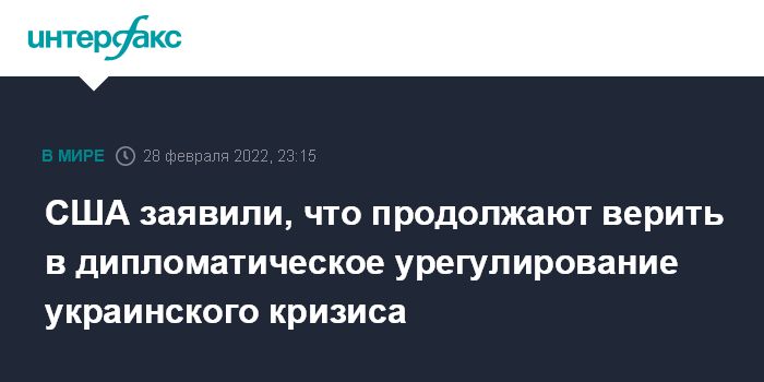 США заявили, что продолжают верить в дипломатическое урегулирование украинского кризиса