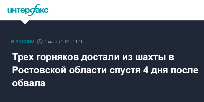 Москва. 1 марта. INTERFAX.RU - Завершена спасательная операция по извлечению трех шахтеров на месте обрушения породы в шахте "Обуховская" в Красносулинском районе Ростовской области, сообщает министерство региональной политики и массовых коммуникаций региона.