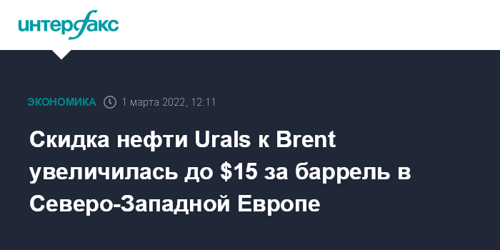 Москва. 1 марта. INTERFAX.RU - Цена нефти Urals в Северо-Западной Европе (СЗЕ) и Средиземноморье относительно Североморского датированного (Brent) 28 февраля обновила исторические минимумы за весь период мониторинга Argus с сентября 1994 года и с января 1990 года соответственно, пишет ценовое агентство Argus.