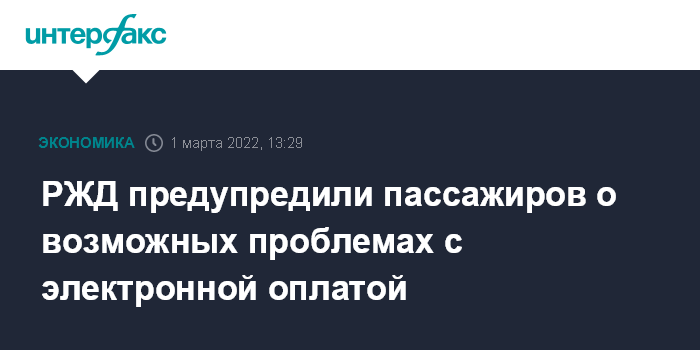 Москва. 1 марта. INTERFAX.RU - ОАО "РЖД" предупредило пассажиров о возможных проблемах с работой сервисов электронной оплаты за билеты на поезда.
