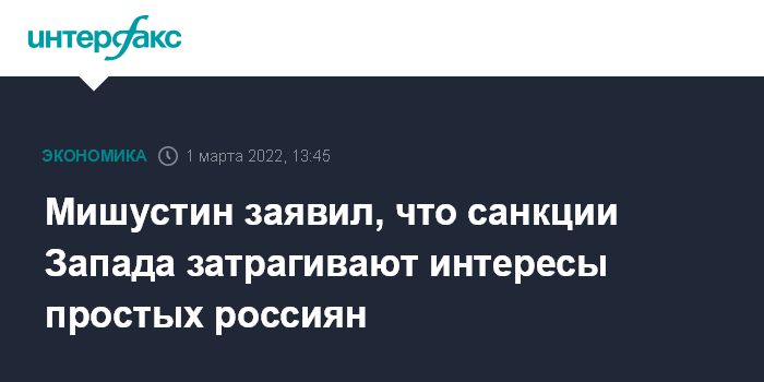 Москва. 1 марта. INTERFAX.RU - США и ЕС перешли от санкционного преследования отдельных политиков и компаний к ограничениям, затрагивающим интересы простых россиян, заявил премьер РФ Михаил Мишустин.