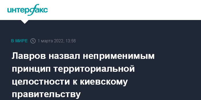 Лавров назвал неприменимым принцип территориальной целостности к киевскому правительству