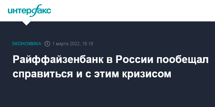 Райффайзенбанк в России пообещал справиться и с этим кризисом