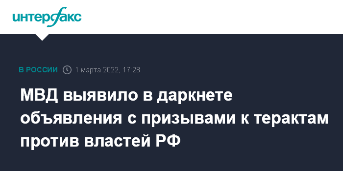 Москва. 1 марта. INTERFAX.RU - В МВД России сообщили о выявлении в теневом сегменте интернета на площадке "Гидра" и соцсетях объявлений с призывами к террористической деятельности.