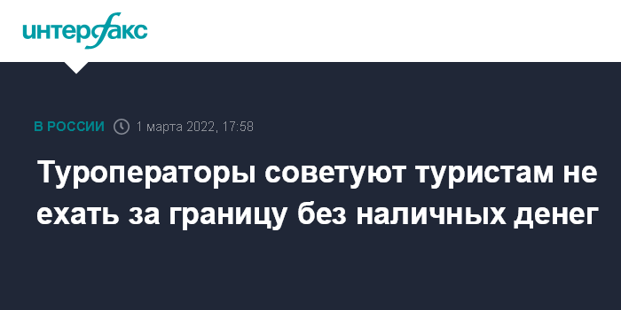 Москва. 1 марта. INTERFAX.RU - Туроператоры советуют российским туристам, планирующим поездки за рубеж, не отправляться в путешествие без наличных денег, так как санкции против российских банков могут лишить их возможности использовать в зарубежных странах банковские карты.