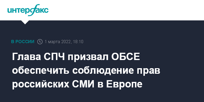 Глава СПЧ призвал ОБСЕ обеспечить соблюдение прав российских СМИ в Европе