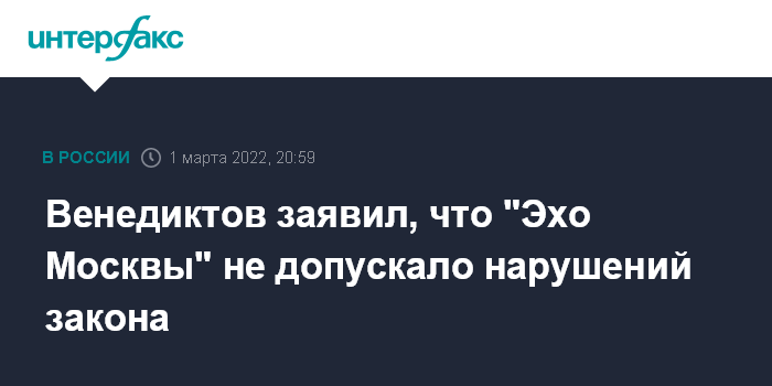 "Обычно такие уведомления получает главный редактор сайта "Эхо Москвы", но он мне ничего не говорил по этому поводу. Мы ничего не получали. Будем разбираться по мере (поступления - ИФ). Мы считаем, что ничего не нарушали, не видим никаких следов нарушений", - сказал "Интерфаксу" Венедиктов.