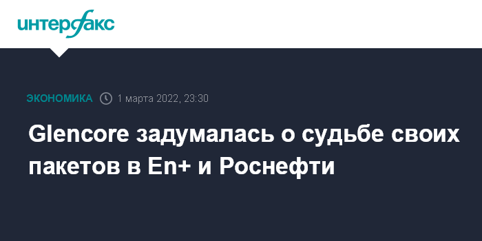 "Glencore осуждает действия, предпринятые правительством России против народа Украины. У нас нет операционной деятельности в РФ, и масштаб трейдинговых операций не значителен для Glencore. Мы пересматриваем всю нашу бизнес-активность в России, включая доли в En+ и "Роснефти", - сказано в заявлении Glencore.