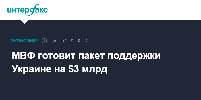 Москва. 2 марта. INTERFAX.RU - Международный валютный фонд (МВФ) рассмотрит запрос Украины о срочной финансовой помощи, Всемирный банк (ВБ) готовит пакет поддержки на $3 млрд, говорится в совместном заявлении директора-распорядителя МВФ Кристалины Георгиевой и президента группы ВБ Дэвида Малпасса.