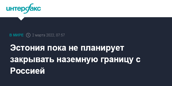 Москва. 2 марта. INTERFAX.RU - Правительство Эстонии обсуждает прекращение виз россиянам, но не планирует препятствовать наземному и железнодорожному сообщению с Россией, заявил эстонскому телерадиовещанию ERR министр государственного управления Яак Ааб.