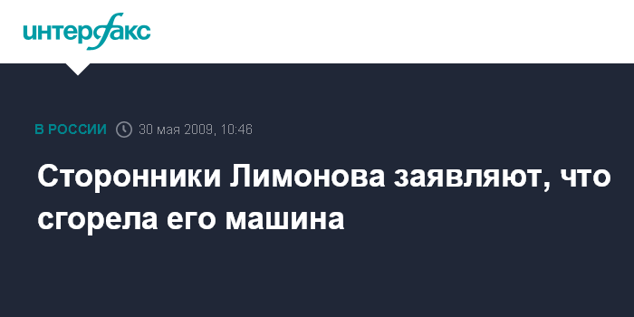 "Это произошло сегодня утром на 3-й Фрунзенской улице около дома Э.Лимонова. Когда водитель завел машину, она буквально вспыхнула. Э.Лимонов и водитель успели выскочить из машины и не пострадали. Автомобиль сейчас догорает", - сказал "Интерфаксу" пресс-секретарь Э.Лимонова и член исполкома "Другой России" Александр Аверин.
