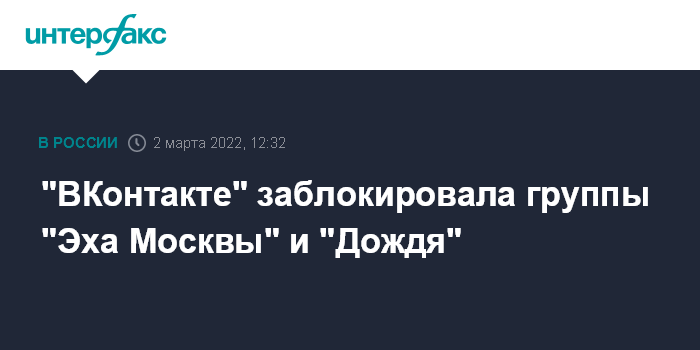 1 марта вечером "Эхо Москвы" отключили от радиоэфира, и были заблокированы сайты это радиостанции и телеканала "Дождь" (признан властями иноагентом).