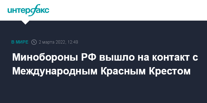 Минобороны РФ вышло на контакт с Международным Красным Крестом