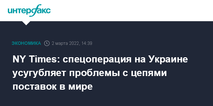 NY Times: cпецоперация на Украине усугубляет проблемы с цепями поставок в мире