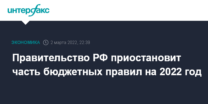 Москва. 2 марта. INTERFAX.RU - Правительство РФ планирует приостановить на 2022 год действие положений бюджетных правил, связанных с использованием дополнительных нефтегазовых доходов бюджета РФ.