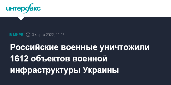 Москва. 3 марта. INTERFAX.RU - В ходе операции на Украине российские военные уничтожили 53 беспилотника и 62 самолета, сообщил официальный представитель Минобороны РФ Игорь Конашенков.