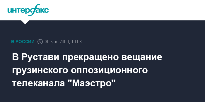 Москва. 30 мая. INTERFAX.RU - В Грузии в городе Рустави прекращено вещание оппозиционного телеканала "Маэстро", заявил журналистам генеральный продюсер телекомпании Мамука Глонти.