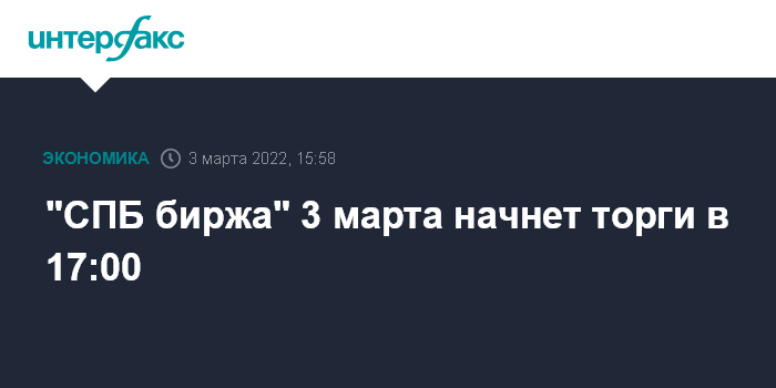 "СПБ биржа" 3 марта начнет торги в 17:00