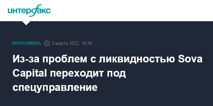 Из-за проблем с ликвидностью Sova Capital переходит под спецуправление