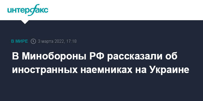 Москва. 3 марта. INTERFAX.RU - Иностранные наемники, прибывшие на Украину, устраивают диверсии атакуют российские колонны техники и прикрывающую их авиацию, сообщил официальный представитель Минобороны РФ Игорь Конашенков.