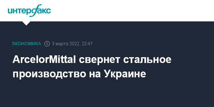 Москва. 3 марта. INTERFAX.RU - ArcelorMittal сообщила, что решила остановить производство на криворожском горно-металлургическом комбинате "ArcelorMittal Кривой Рог" с целью обеспечения безопасности людей и активов.