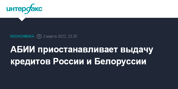 АБИИ приостанавливает выдачу кредитов России и Белоруссии