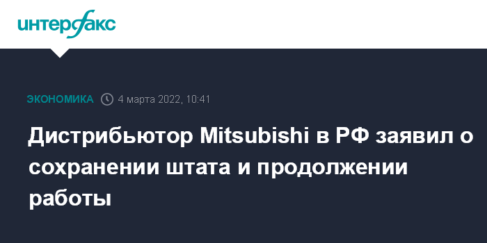 Дистрибьютор Mitsubishi в РФ заявил о сохранении штата и продолжении работы