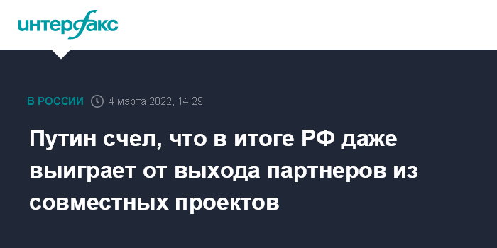 Путин счел, что в итоге РФ даже выиграет от выхода партнеров из совместных проектов