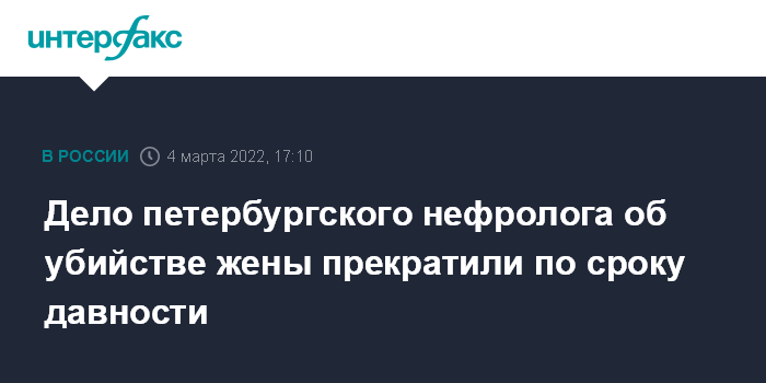 Дело петербургского нефролога об убийстве жены прекратили по сроку давности