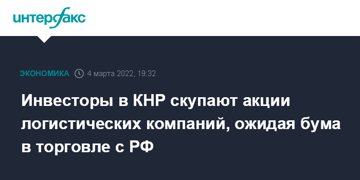 Инвесторы в КНР скупают акции логистических компаний, ожидая бума в торговле с РФ