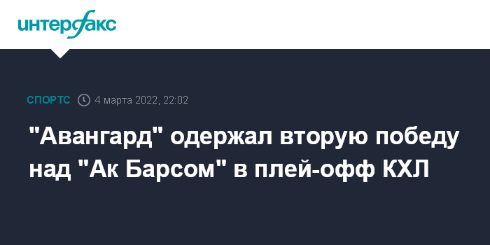 Москва. 4 марта. INTERFAX.RU - Омский "Авангард" во втором матче плей-офф Континентальной хоккейной лиги (КХЛ) в гостях победил казанский "Ак Барс".