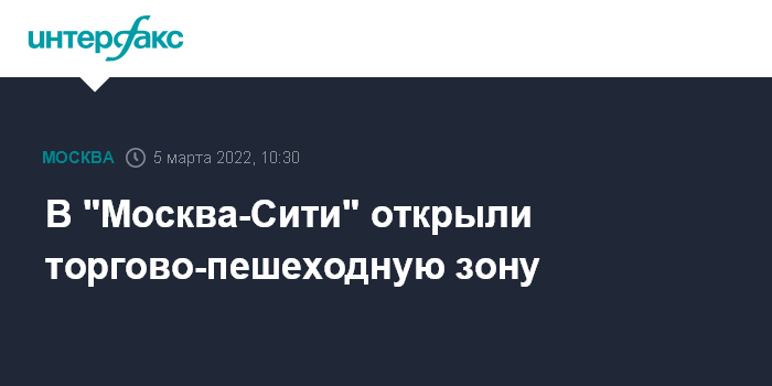 Москва. 5 марта. INTERFAX.RU - На территории делового центра "Москва-Сити" ввели в эксплуатацию торгово-пешеходную зону, сообщили в пресс-службе Мосгосстройнадзора.