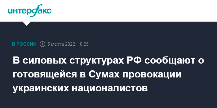 В силовых структурах РФ сообщают о готовящейся в Сумах провокации украинских националистов