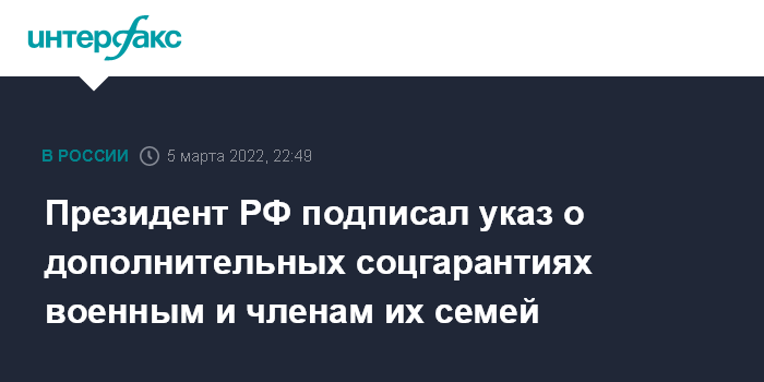 Президент РФ подписал указ о дополнительных соцгарантиях военным и членам их семей