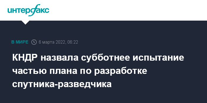 В конце февраля Северная Корея уже заявляла об испытаниях, проведенных в рамках разработки разведывательного спутника.